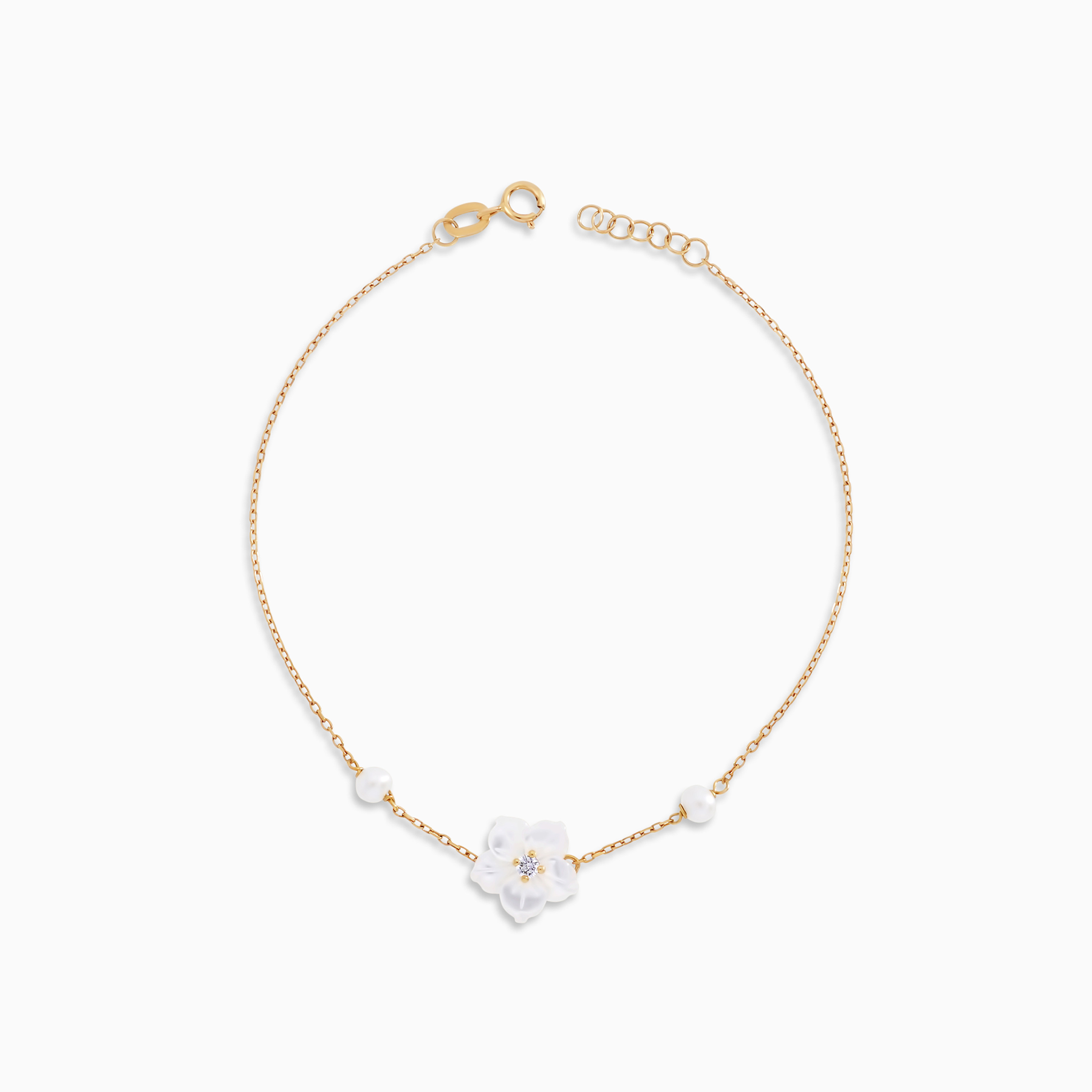 18K Gold Bracelet with Mother of Pearl Flowers & Pearls – Worood Collection