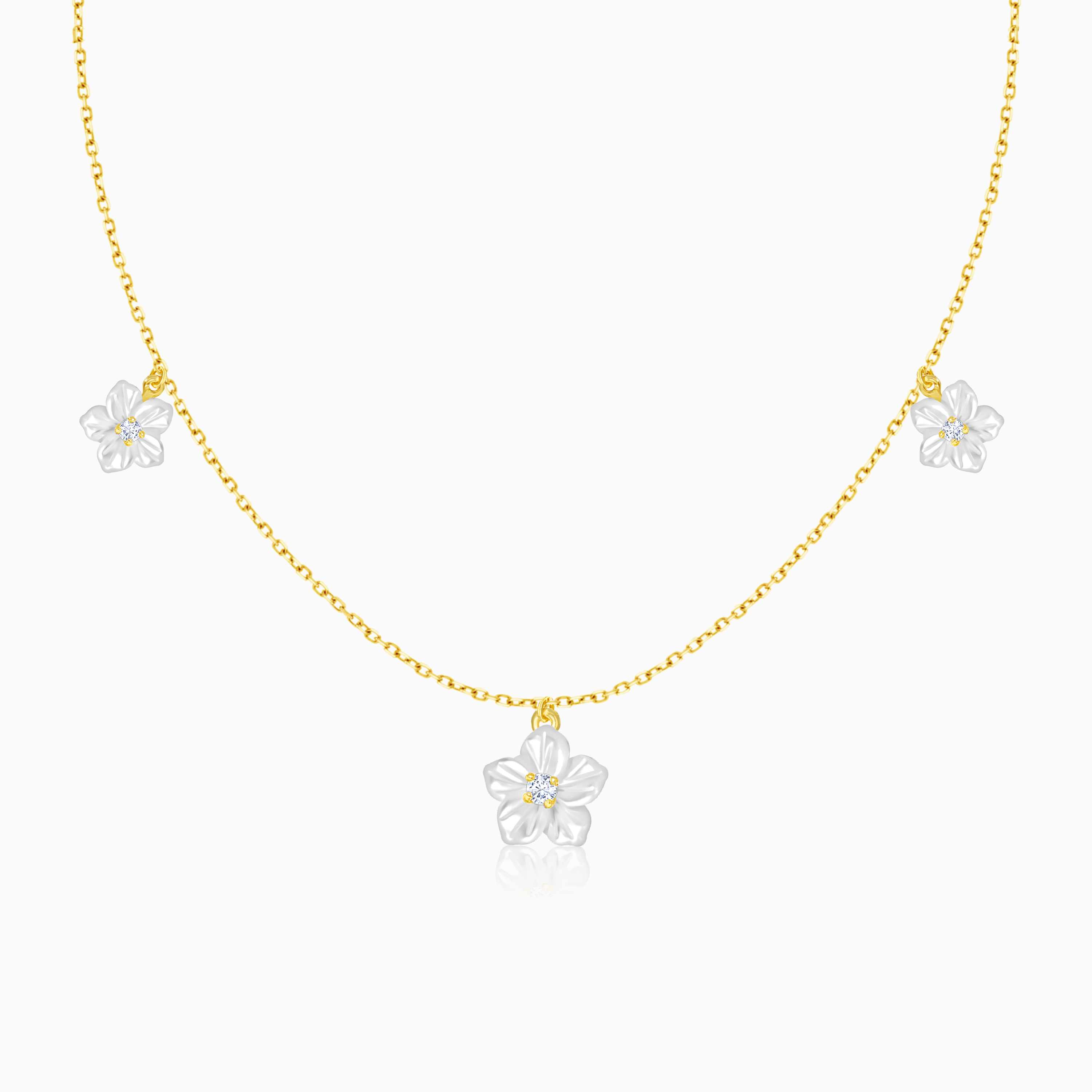 18K Gold Necklace with Mixed Mother of Pearl Flowers and Zircon Stones – Worood Collection