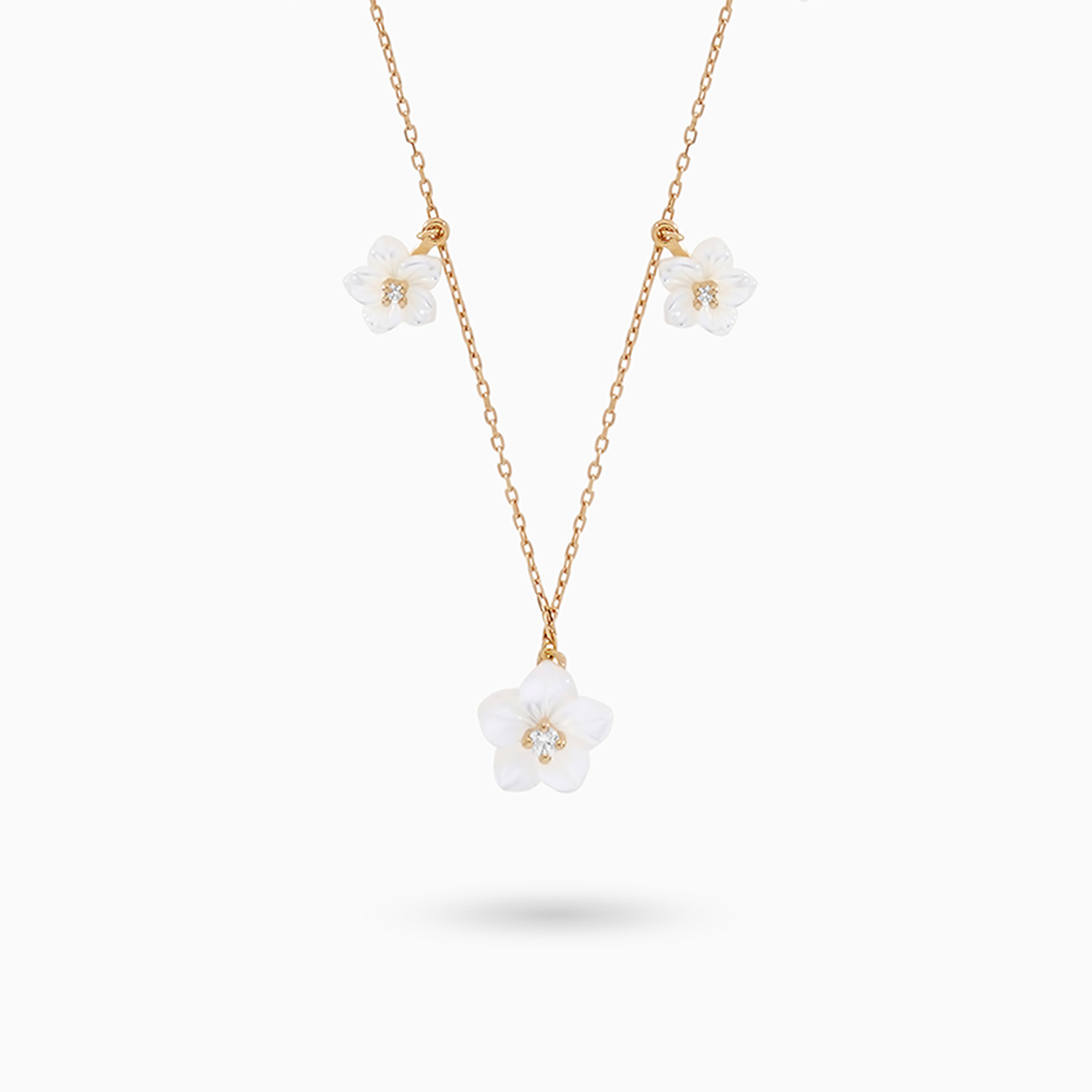 18K Gold Necklace with Mother of Pearl Flower Design & Zircon Stones – Worood Collection