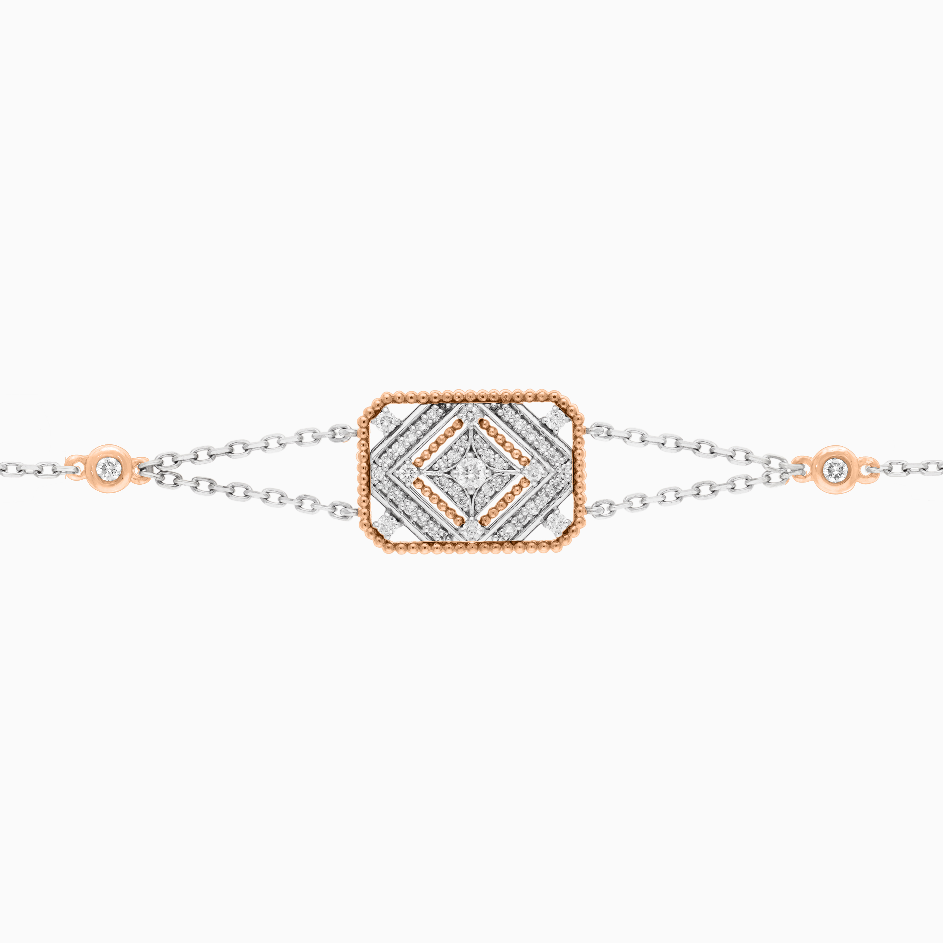 Experience the charm of timeless elegance with this exquisite 18K White and Rose Gold Bracelet from the Tablah Diamond Collection, beautifully embellished with natural diamond stones. Meticulously designed to honour traditional heritage with a contemporary flair, this luxurious piece is a radiant symbol of grace, strength, and refined sophistication—ideal for any occasion.