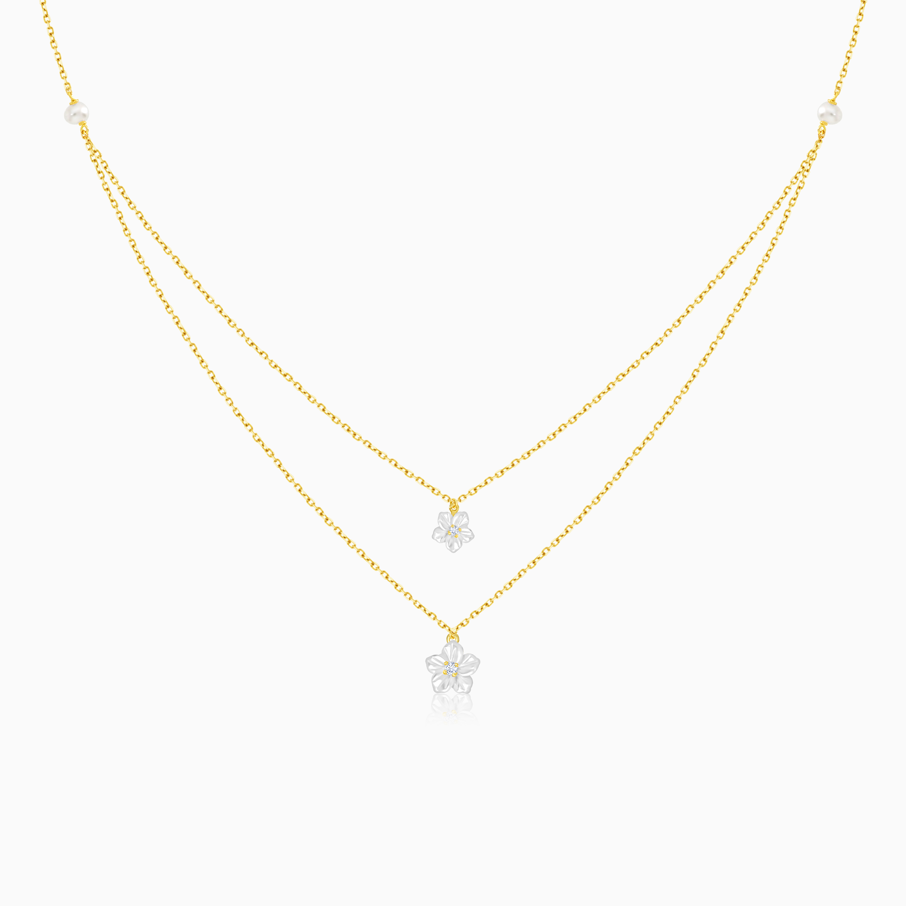 18K Yellow Gold 2-Layer Necklace with Mother of Pearl Flowers & Zircon – Worood Collection