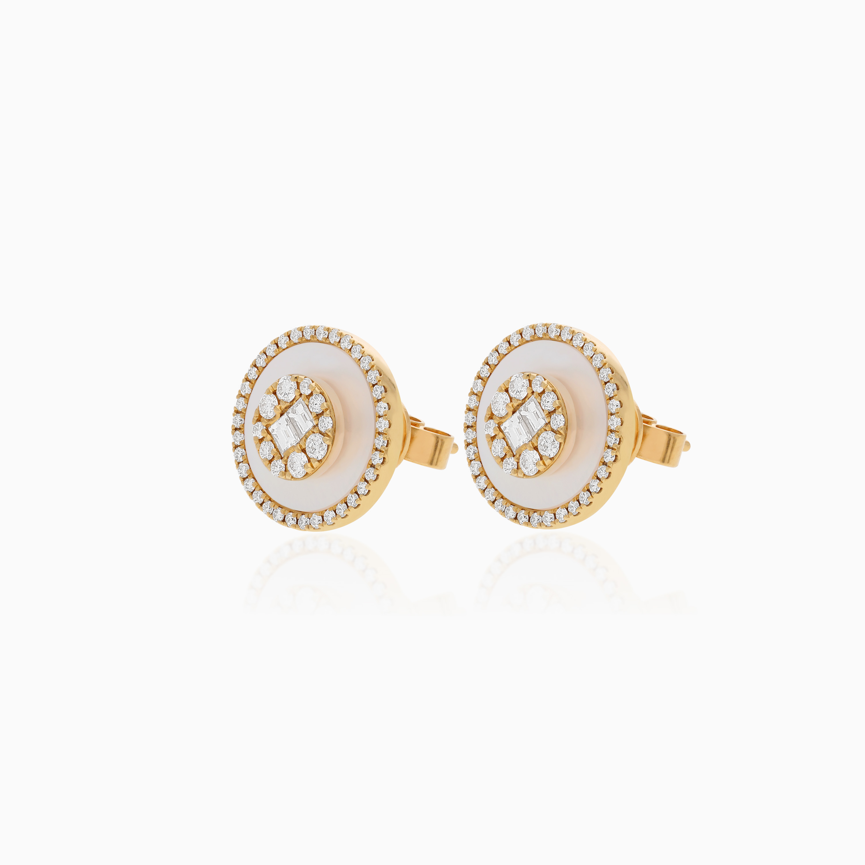 18K Yellow Gold Earrings with Diamonds & Mother of Pearl – Mosaic Collection