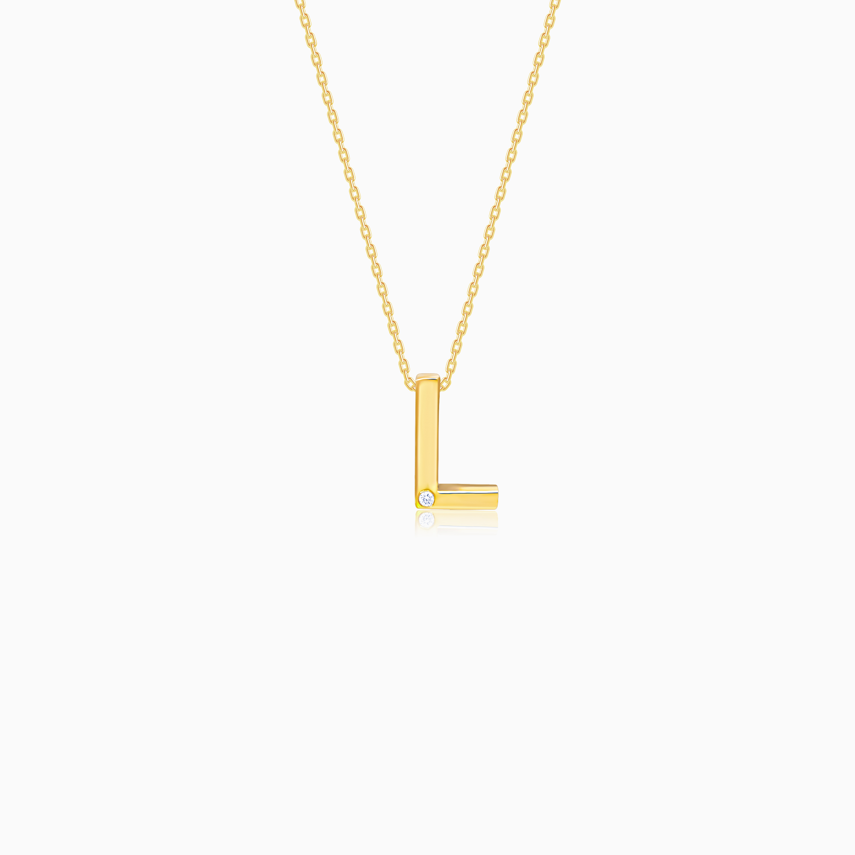 18K Yellow Gold “L” Necklace with Natural Diamond – Alpha Collection