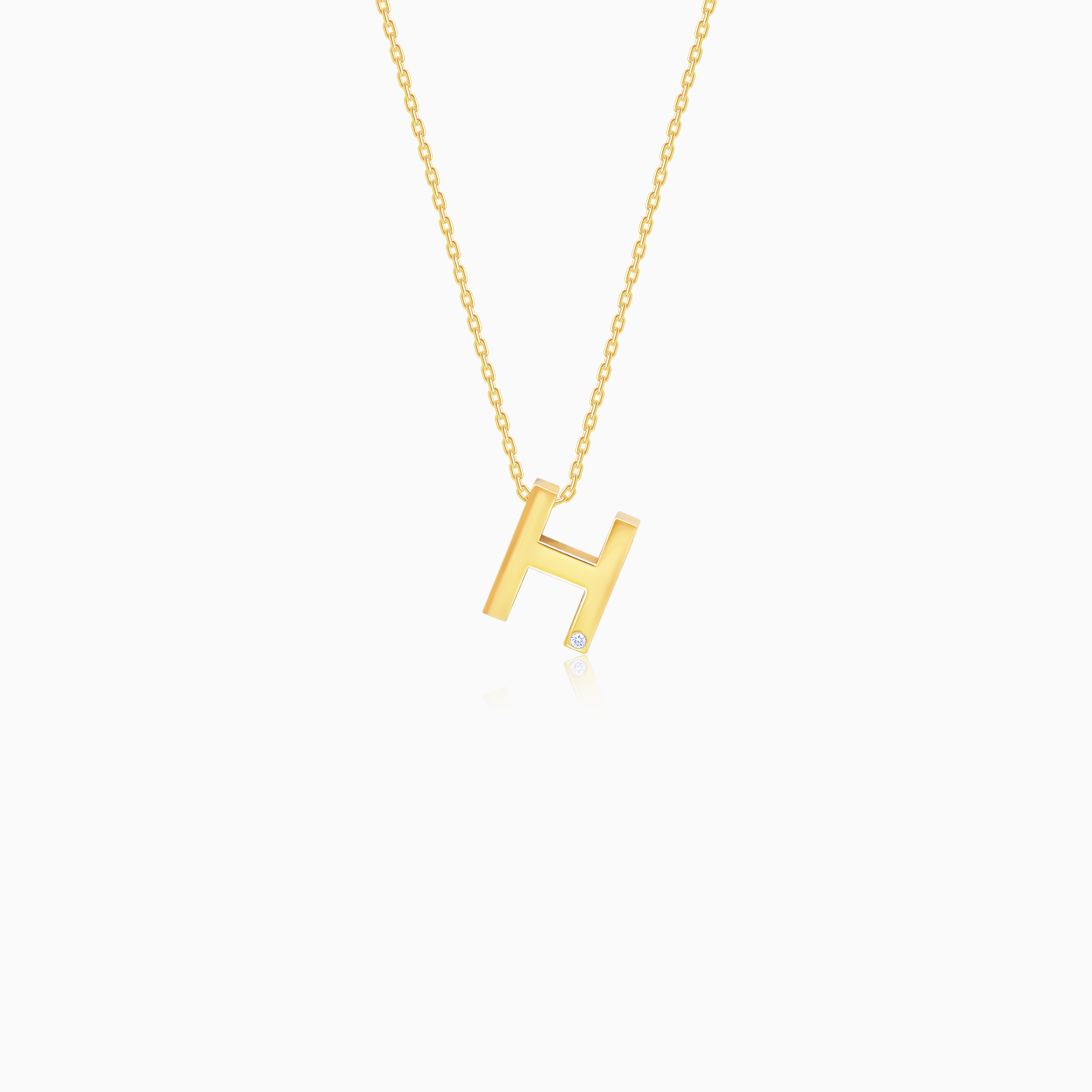 عقد من الذهب الأصفر عيار 18 مع حرف “H” وقطعة ماسية طبيعية – مجموعة ألفا