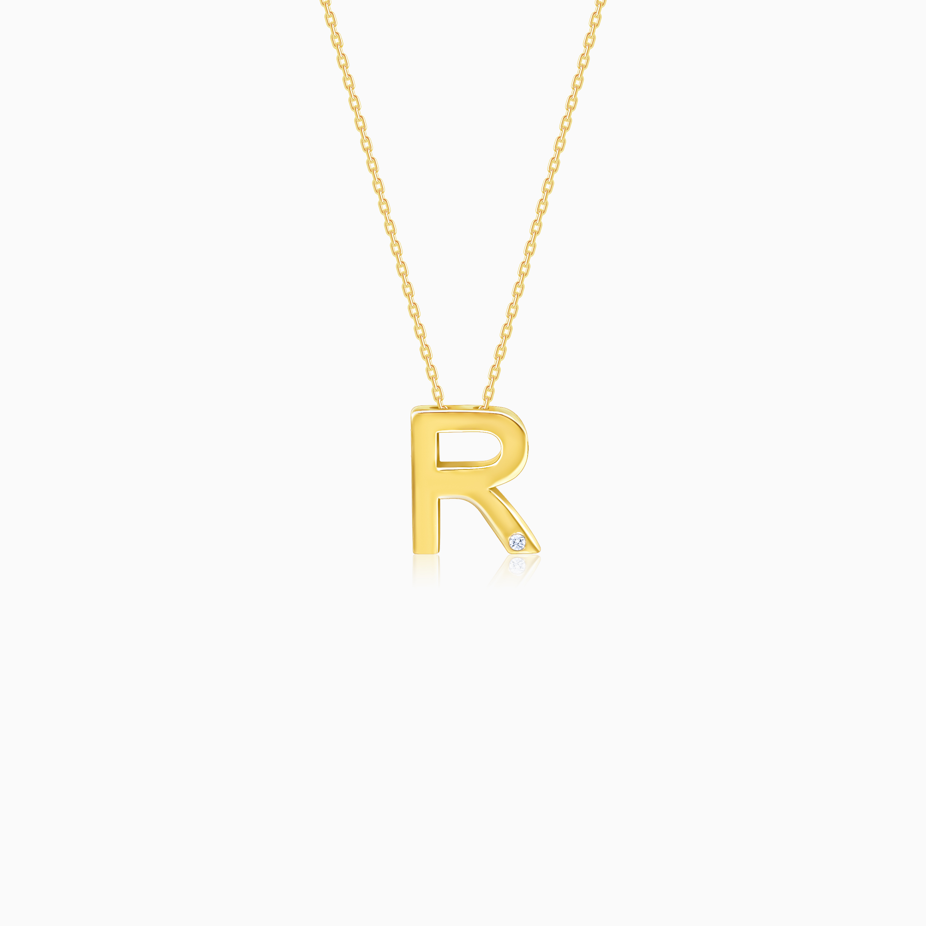 18K Yellow Gold “R” Letter Necklace with Natural Diamond – Alpha Collection