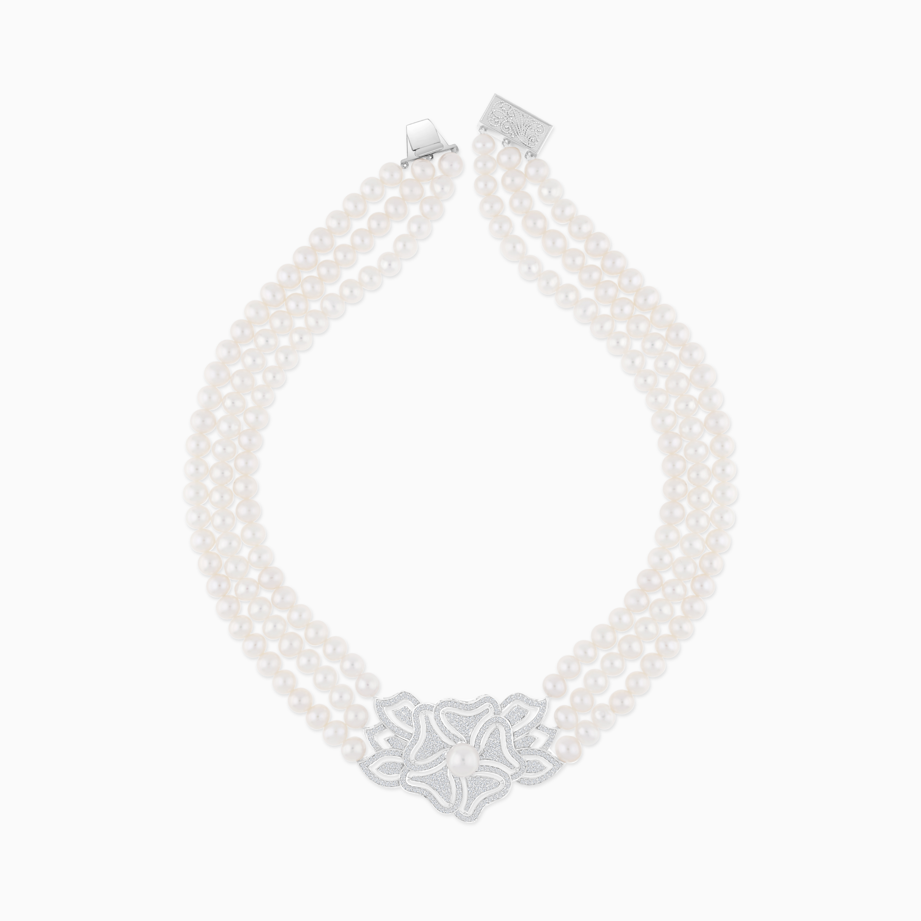Danah Collection: 18K White Gold Choker with Pearl & Diamond