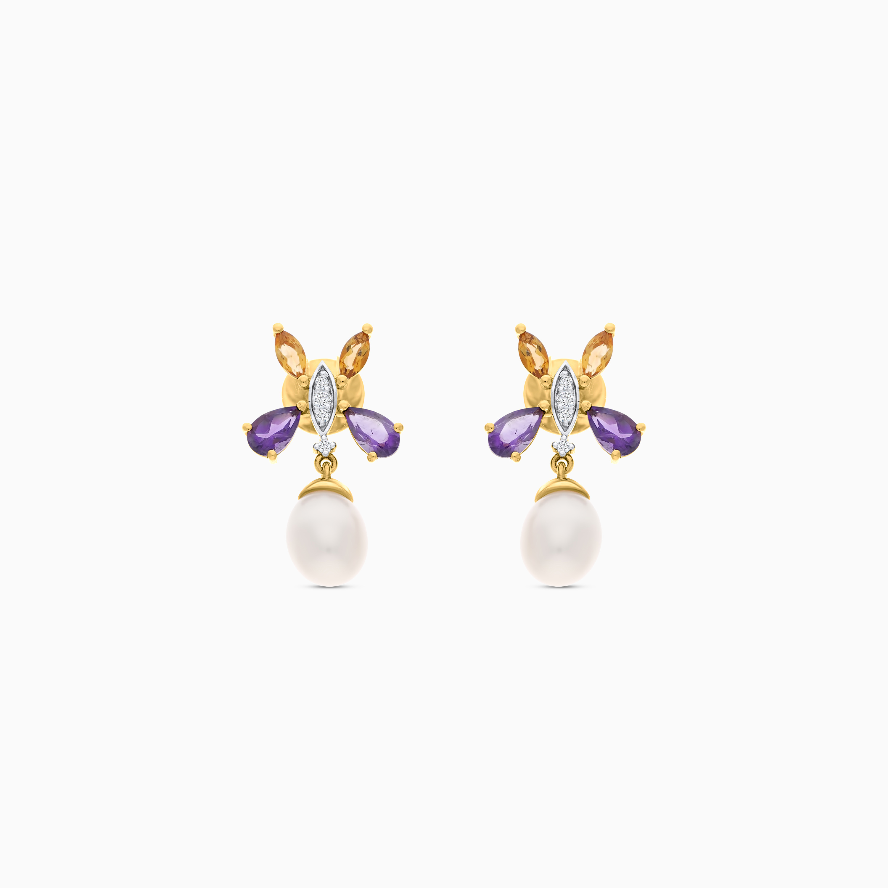 Elegant Pearl, Diamond & Gemstone Earrings in 18K Yellow Gold – Danah Photopendant Collection